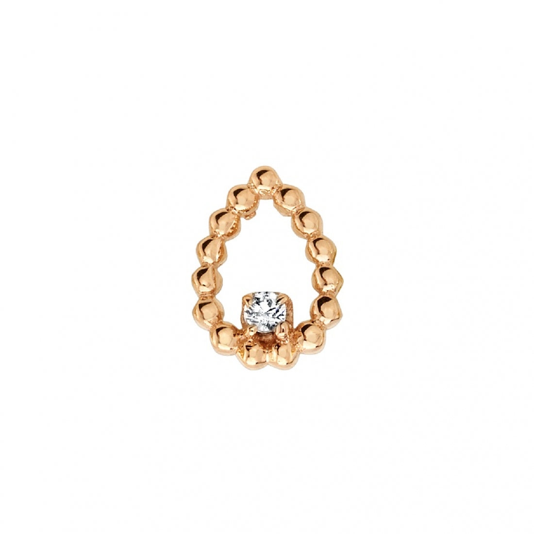 Sophie Tear est un design en forme de larme délimité par de fines perles en or. À sa base se trouve une pierre scintillante, créant une pièce légère et élégante qui associe douceur et éclat.