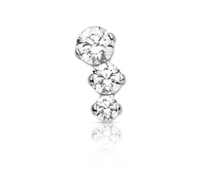 Le Cluster Odyssey Clio #2 présente trois pierres facettées serties de griffes dans un design en titane. Grâce à ses tailles variées, il offre un éclat harmonieux idéal pour plusieurs types de perçages.
